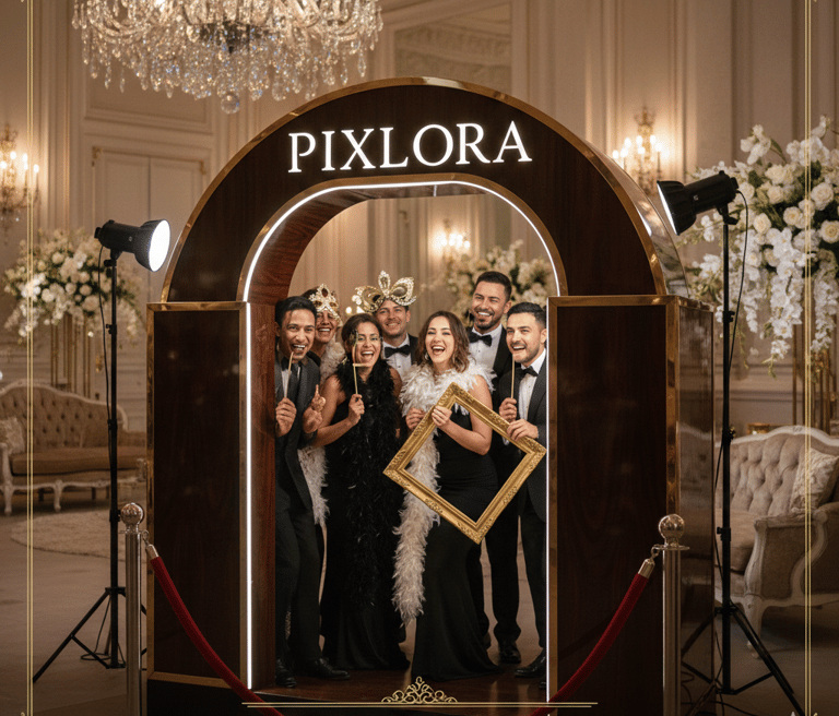 Pixlora Events elevates weddings, corporate gatherings, and luxury events through refined photo booth experiences that blend innovative technology, elegant design, and white-glove hospitality, creating unforgettable moments for every guest.